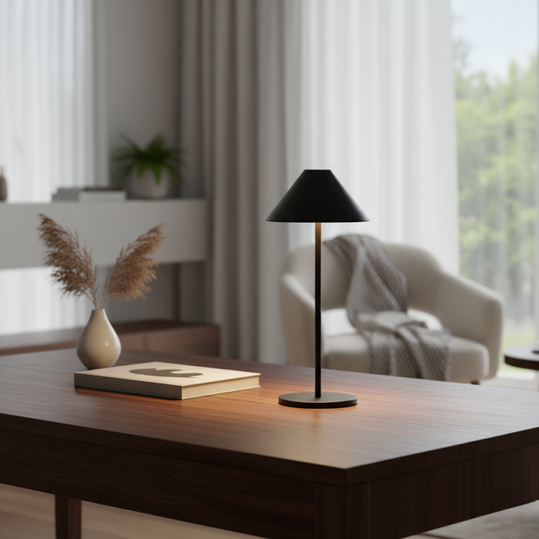 Slank silhuet og konisk skærm i mat finish, der smelter ind i både moderne og klassiske hjem.