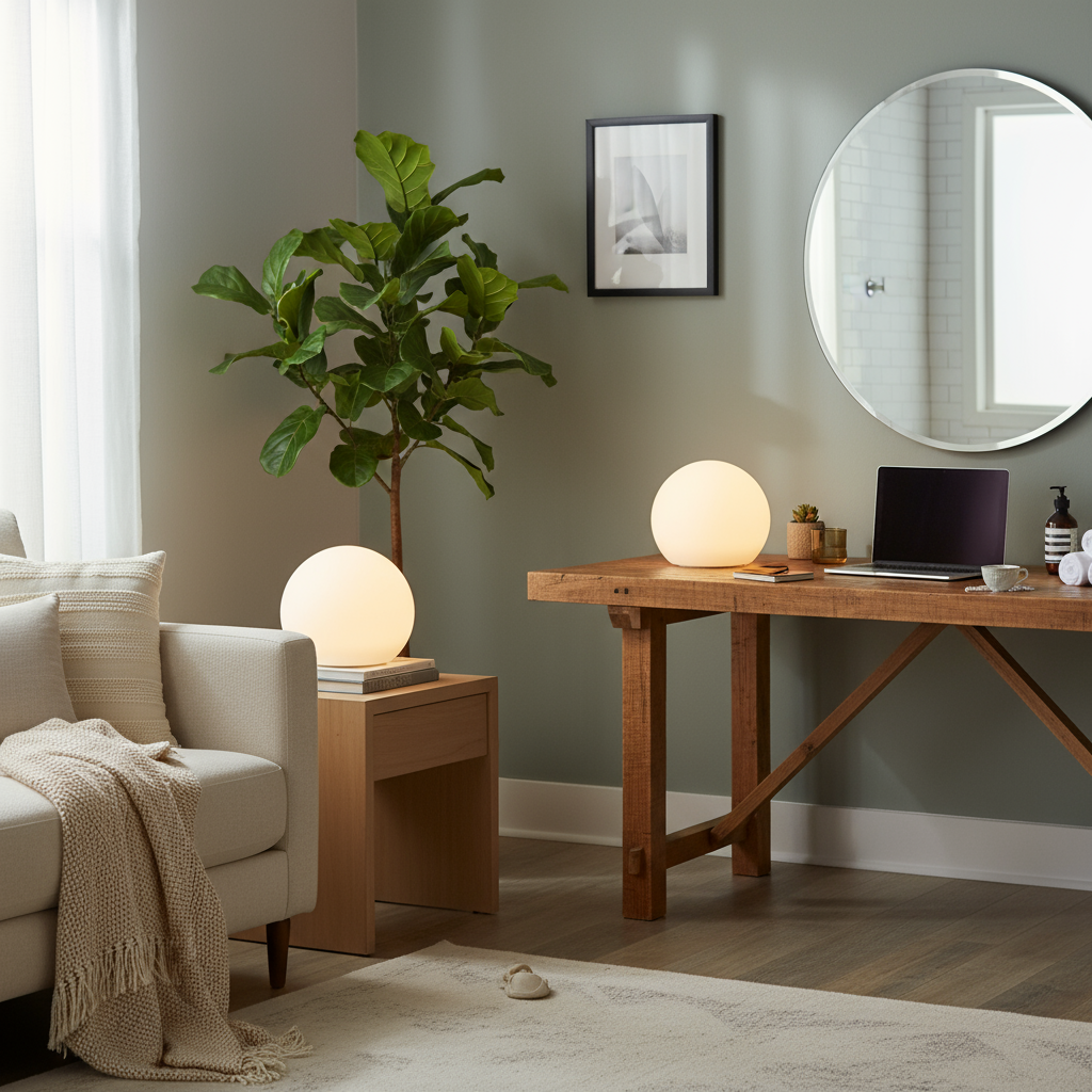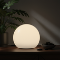 En moderne fortolkning af den klassiske kuglelampe – skabt til at sprede et varmt, beroligende lys, der indbyder til hygge og nærvær. Det enkle, sfæriske design passer naturligt ind i ethvert rum og tilfører en diskret elegance, uanset om den står i vindueskarmen, på natbordet eller som et dekorativt element i stuen.